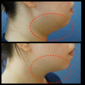顎下の脂肪を減らすだけで、脂肪で覆われていた輪郭ラインが見えて